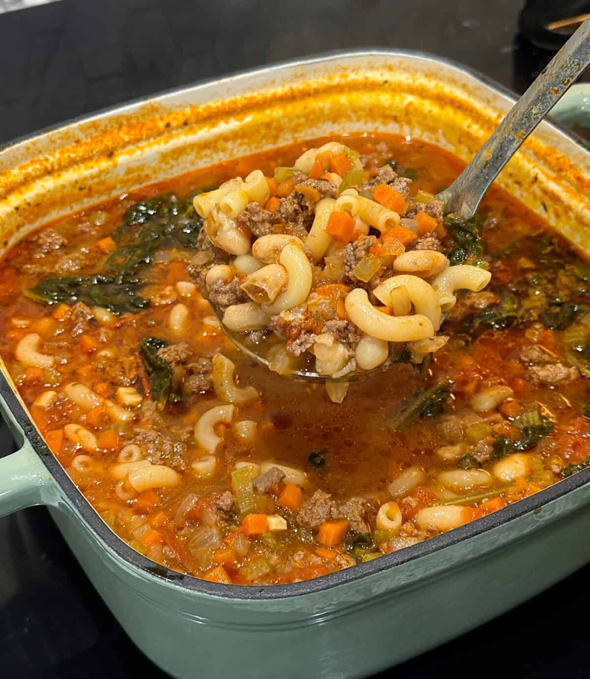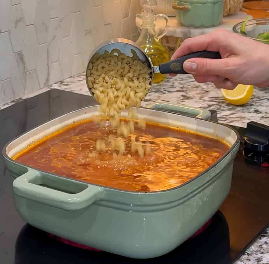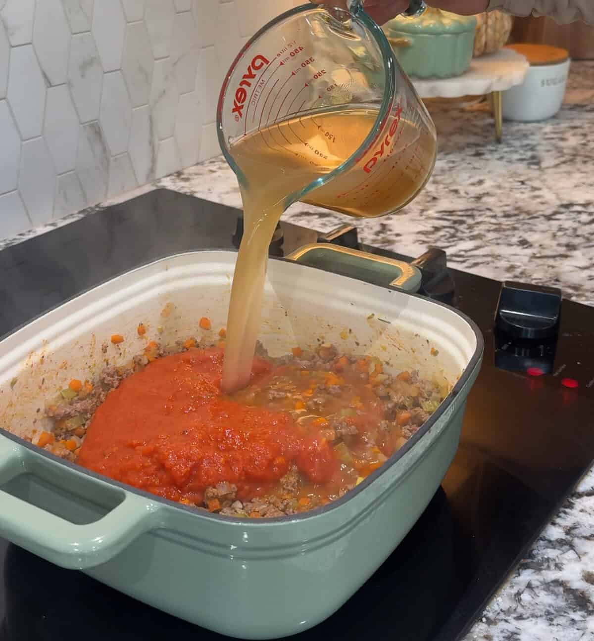 - Beef broth and water: Create a flavorful soup base and keep it brothy enough for pasta to cook.
