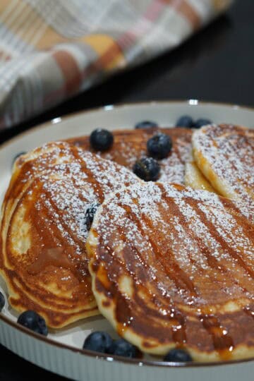 - Ultra fluffy texture – Greek yogurt and baking powder create soft, tender pancakes.