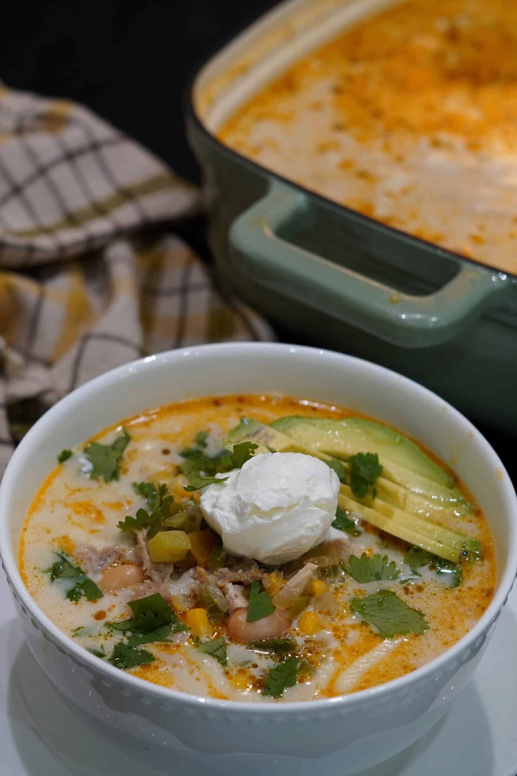 - Serve Ladle into bowls and top with sliced avocado, chopped cilantro, sour cream, and a squeeze of lime.