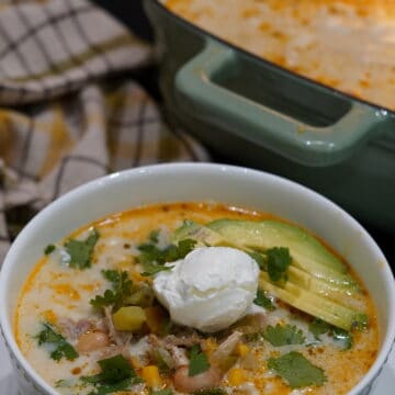 - Serve Ladle into bowls and top with sliced avocado, chopped cilantro, sour cream, and a squeeze of lime.